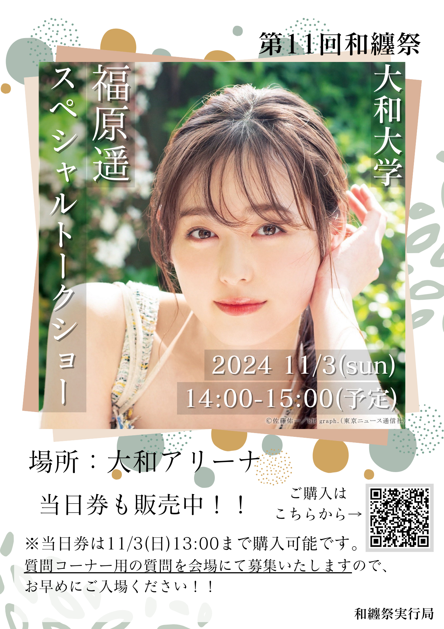 「大和大学 福原 遥 スペシャルトークショーのチケット販売を好評につき
